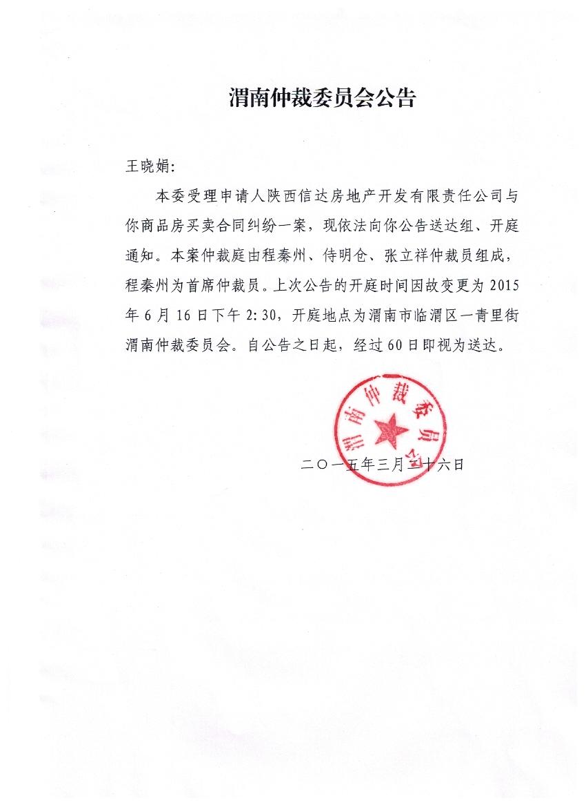 〔2014〕渭仲字第55號 公告