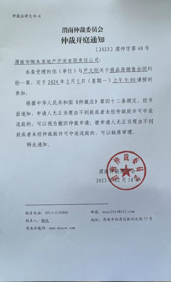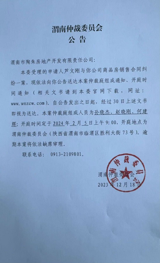 蘆文剛與渭南市陶朱房地產(chǎn)開(kāi)發(fā)有限責(zé)任公司一案公告